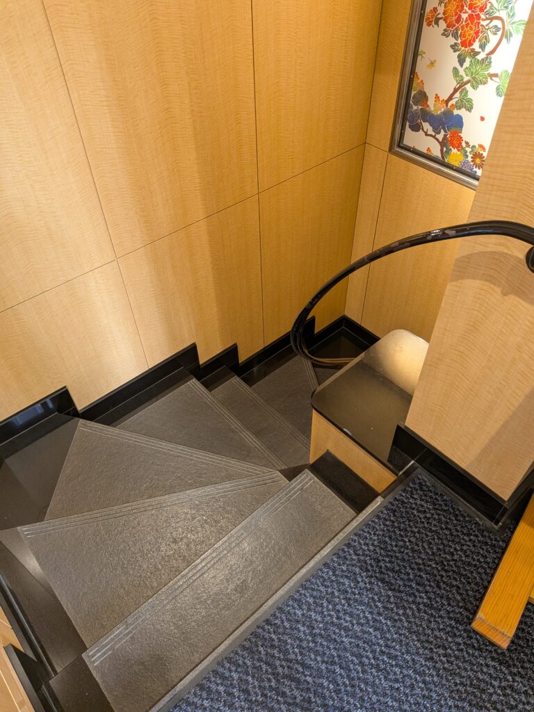 階段がきつい場合は、一度エレベーターで店内へ行き、ご相談されてはいかがでしょうか。