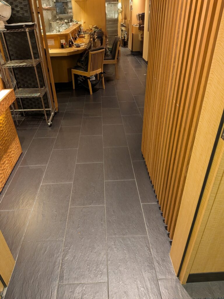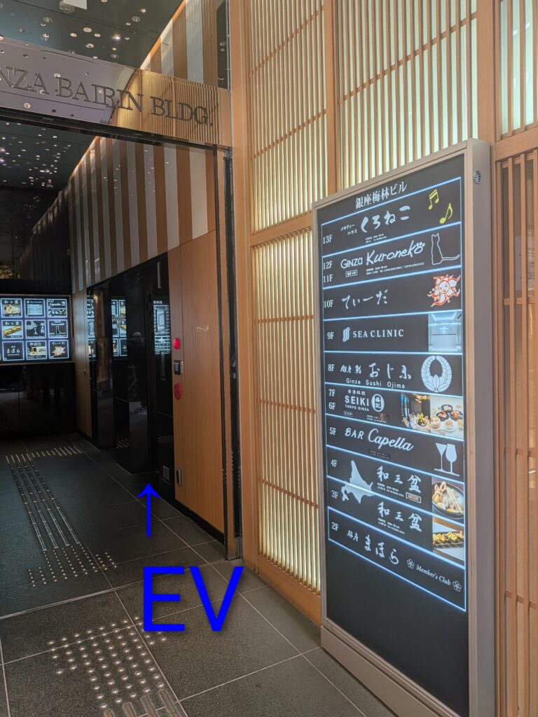 格子戸左側のビル入口に入ると、エレベーターがありますので、地下1階の店内へ行けます。