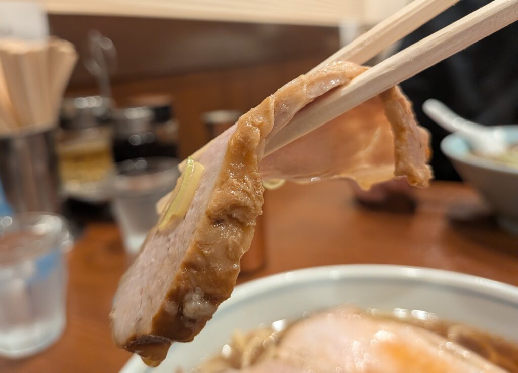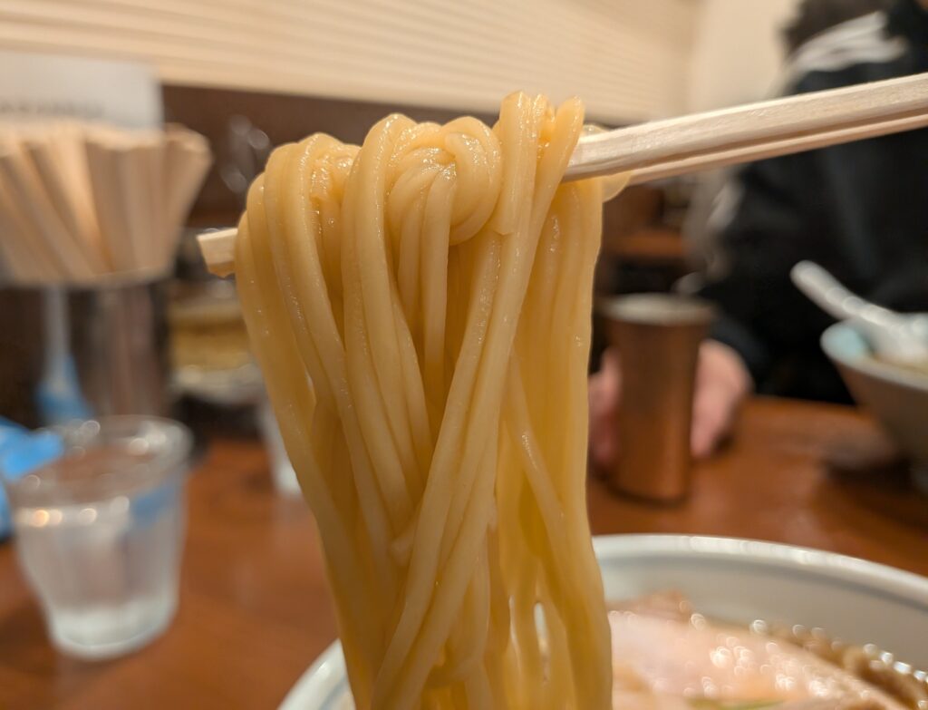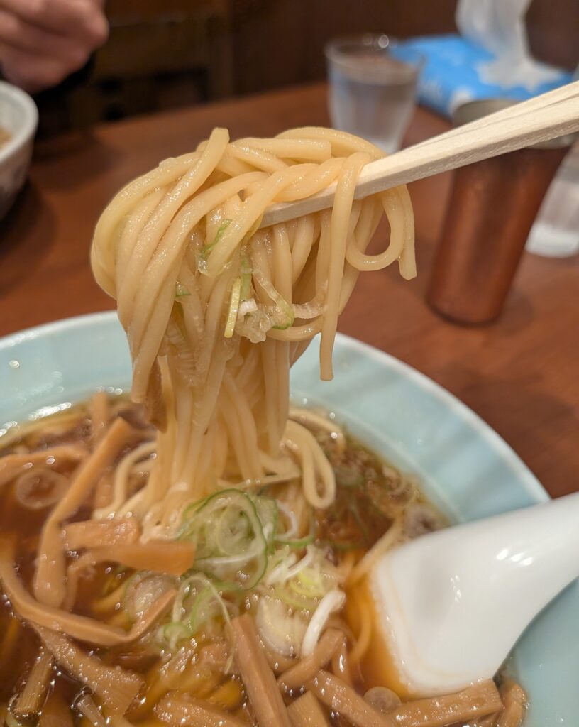 3代目(厨房の方)が手打ちしているという、自家製ストレート中細麺は食べやすい弾力で歯ごたえ良く。