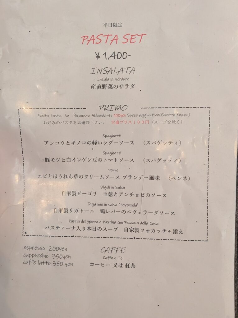 PASTA SET 1,400円 (産直野菜サラダ・ドリンク付き)