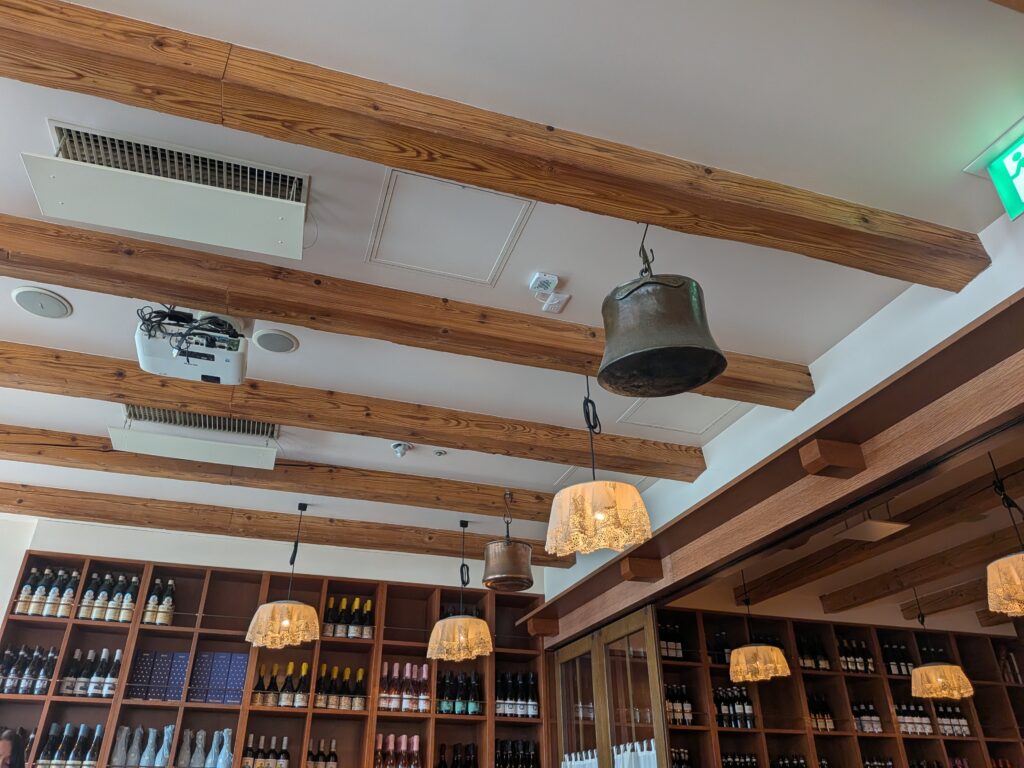 天井高く、ワイン棚や可愛らしい照明に柔らかい日差しが差し込む木のぬくもりを感じる店内。