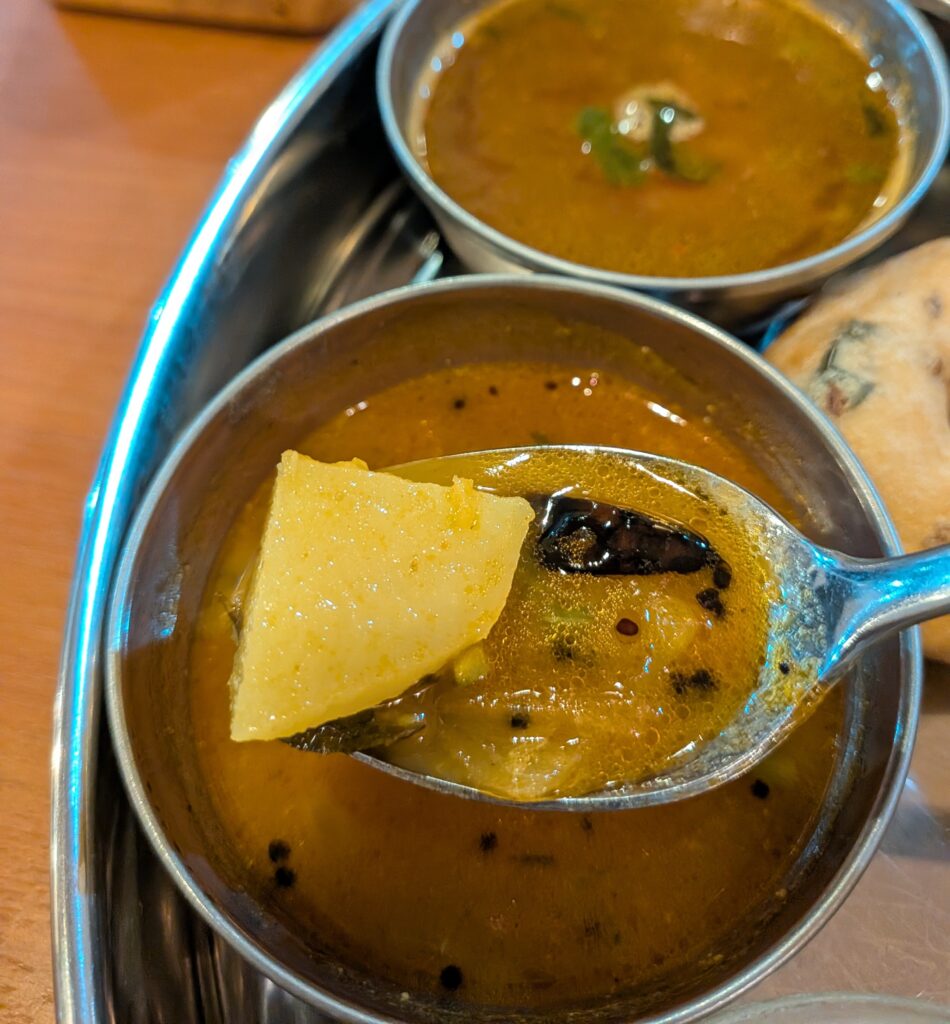 サーンバール、ラッサム、ライスはおかわり可能です。