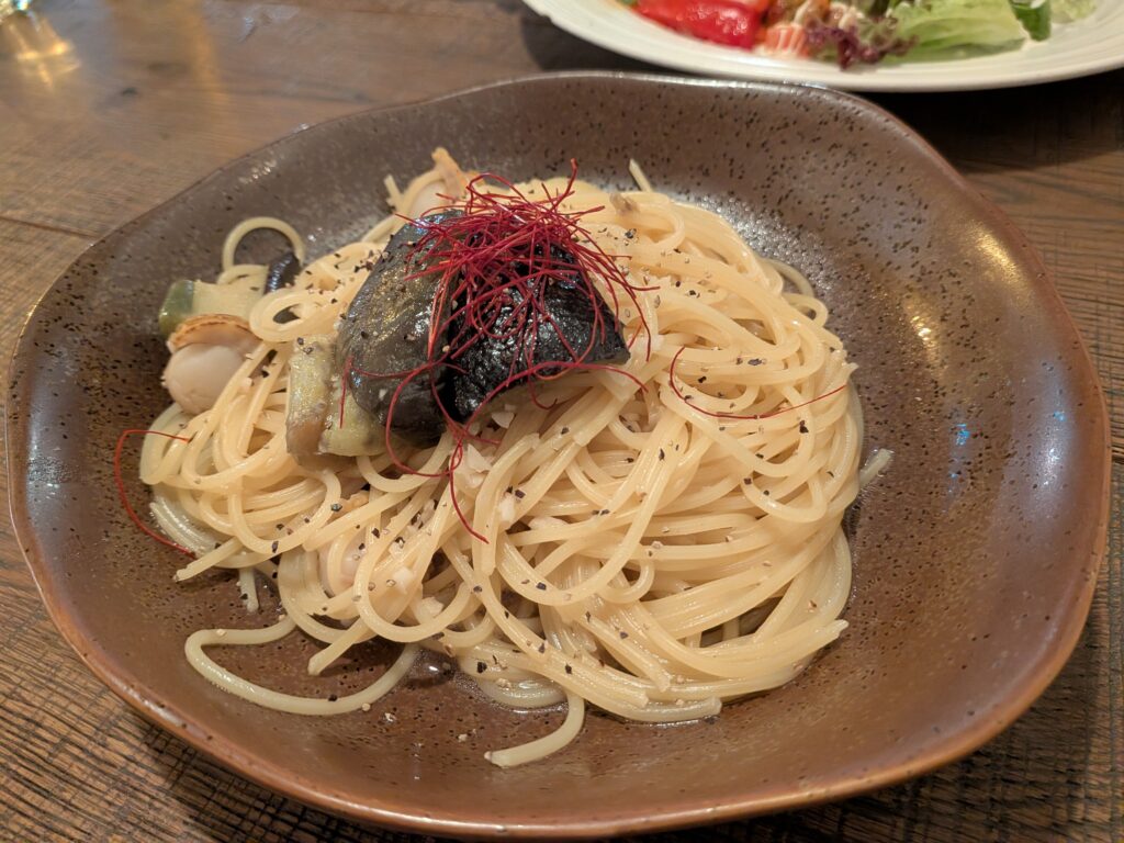 茄子やホタテはパスタの中に隠れてて、結構しっかり入っていました!