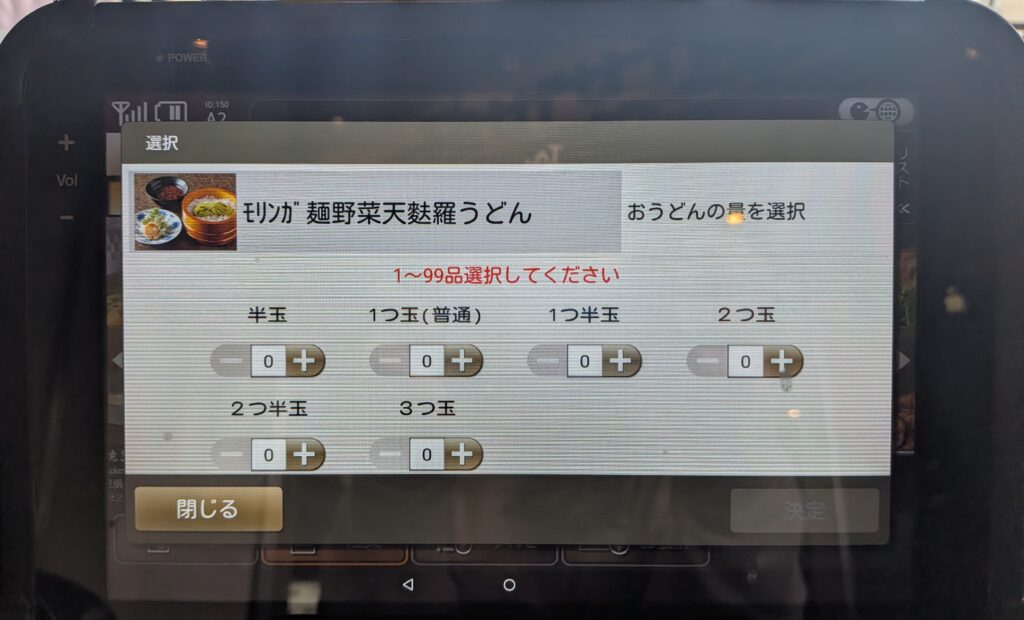 テーブル席かカウンター席、人数をタッチパネルで申し込み、順番番号券が発見されます。