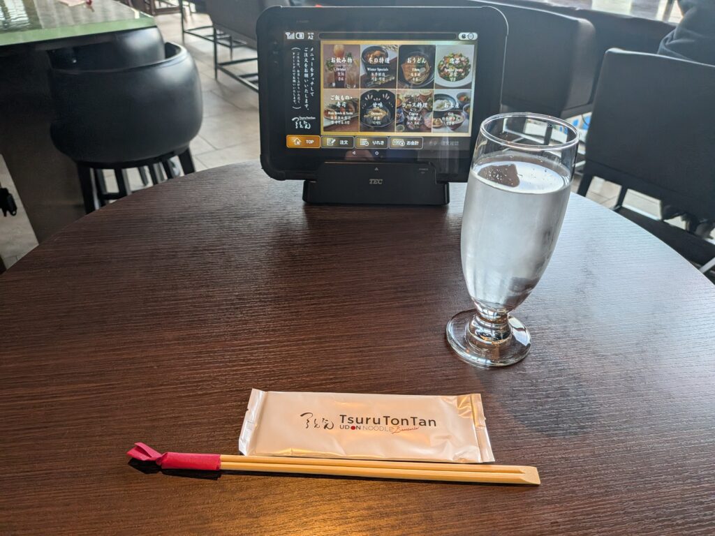 注文後に、シャンパンでも飲むようなグラスでお水とお箸をセッティングしてくれます。